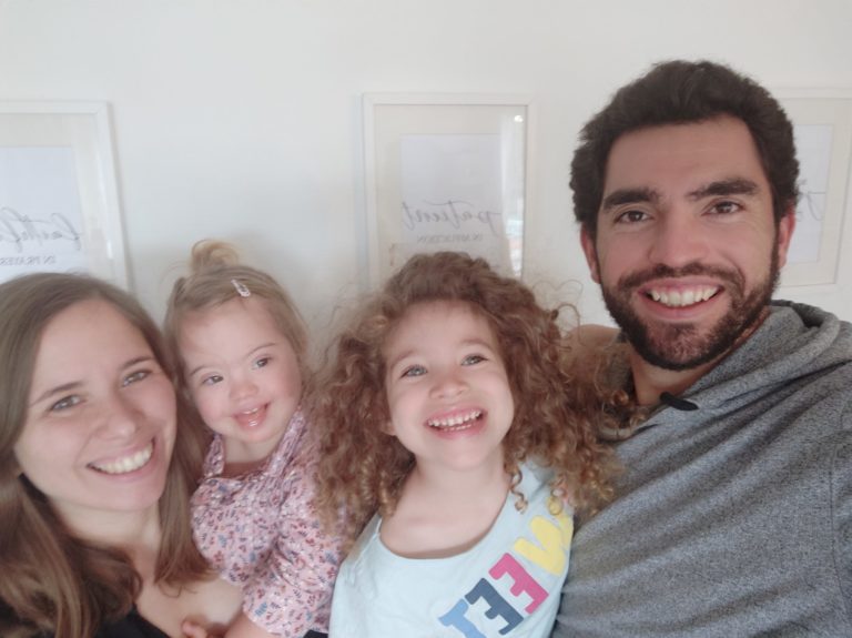 Un couple rie avec ses deux enfants